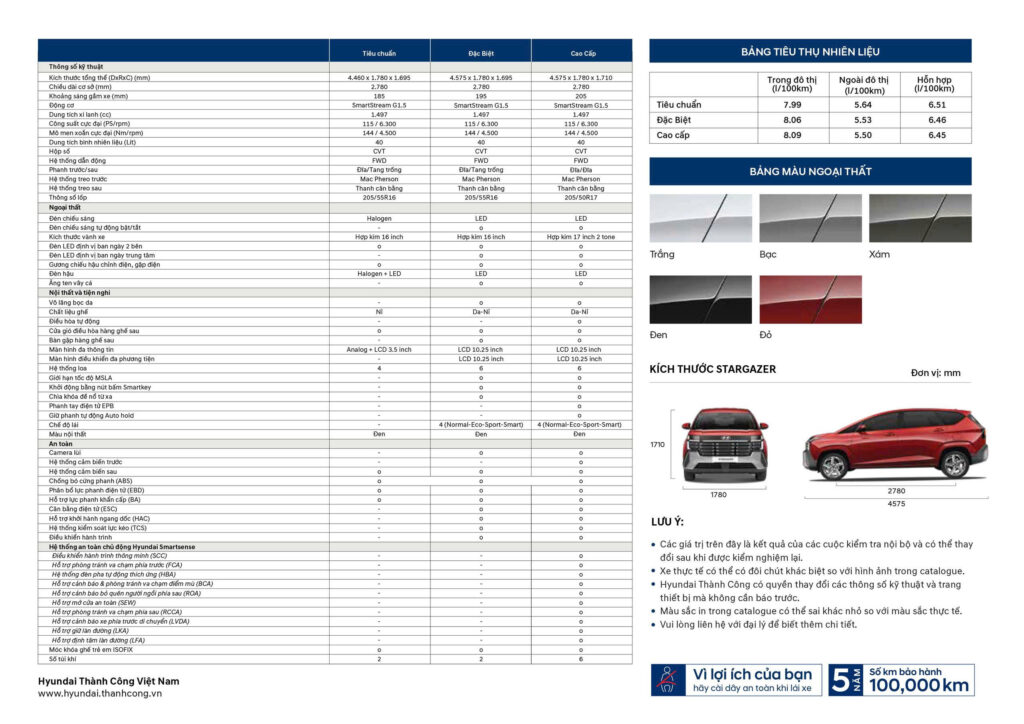 Thông số xe Hyundai Stargazer 2026: Chi tiết kỹ thuật